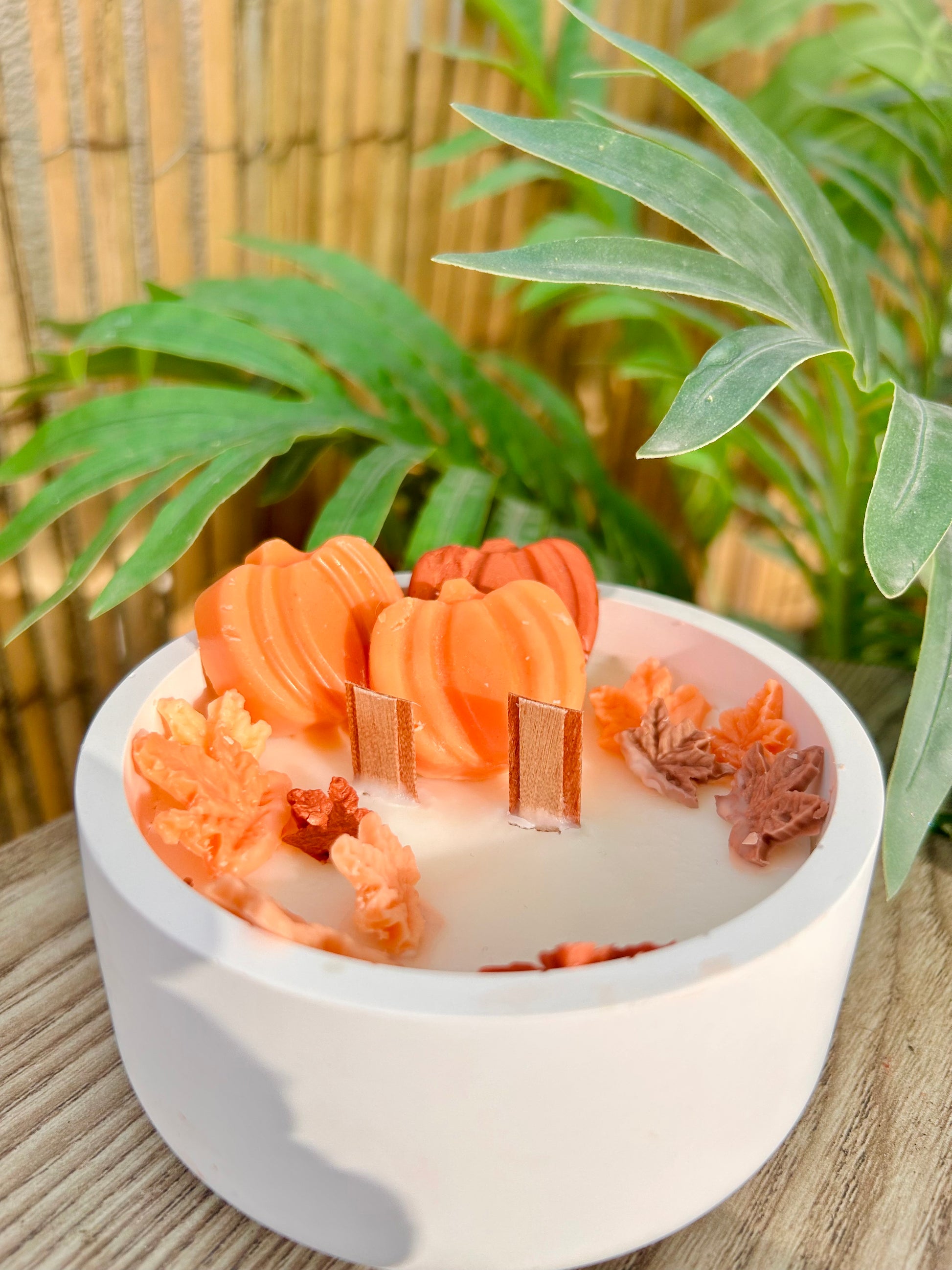 🍁 Les petites feuilles d’érable, quant à elles, peuvent rester dans la bougie : elles sont décoratives et de très petite taille.