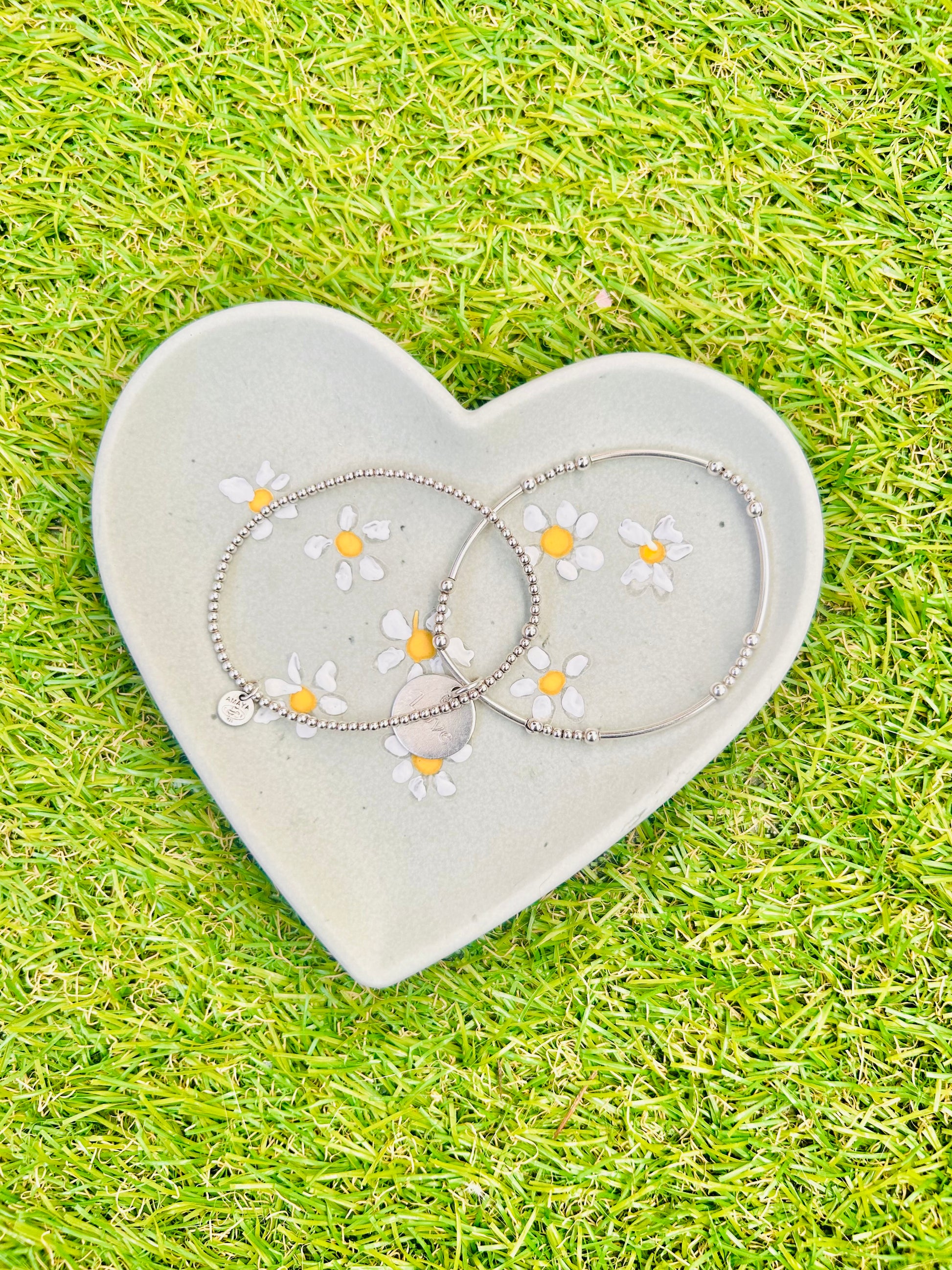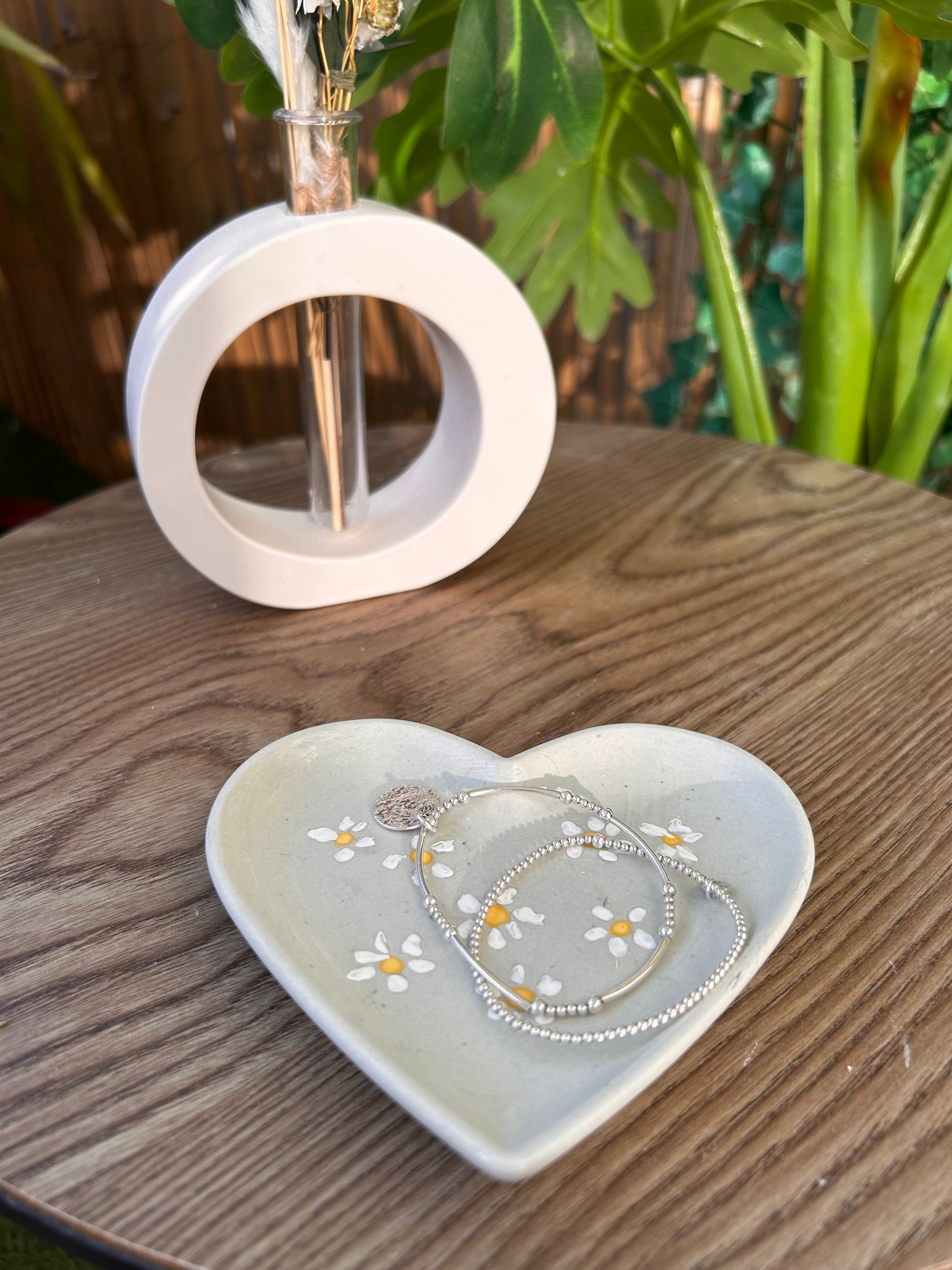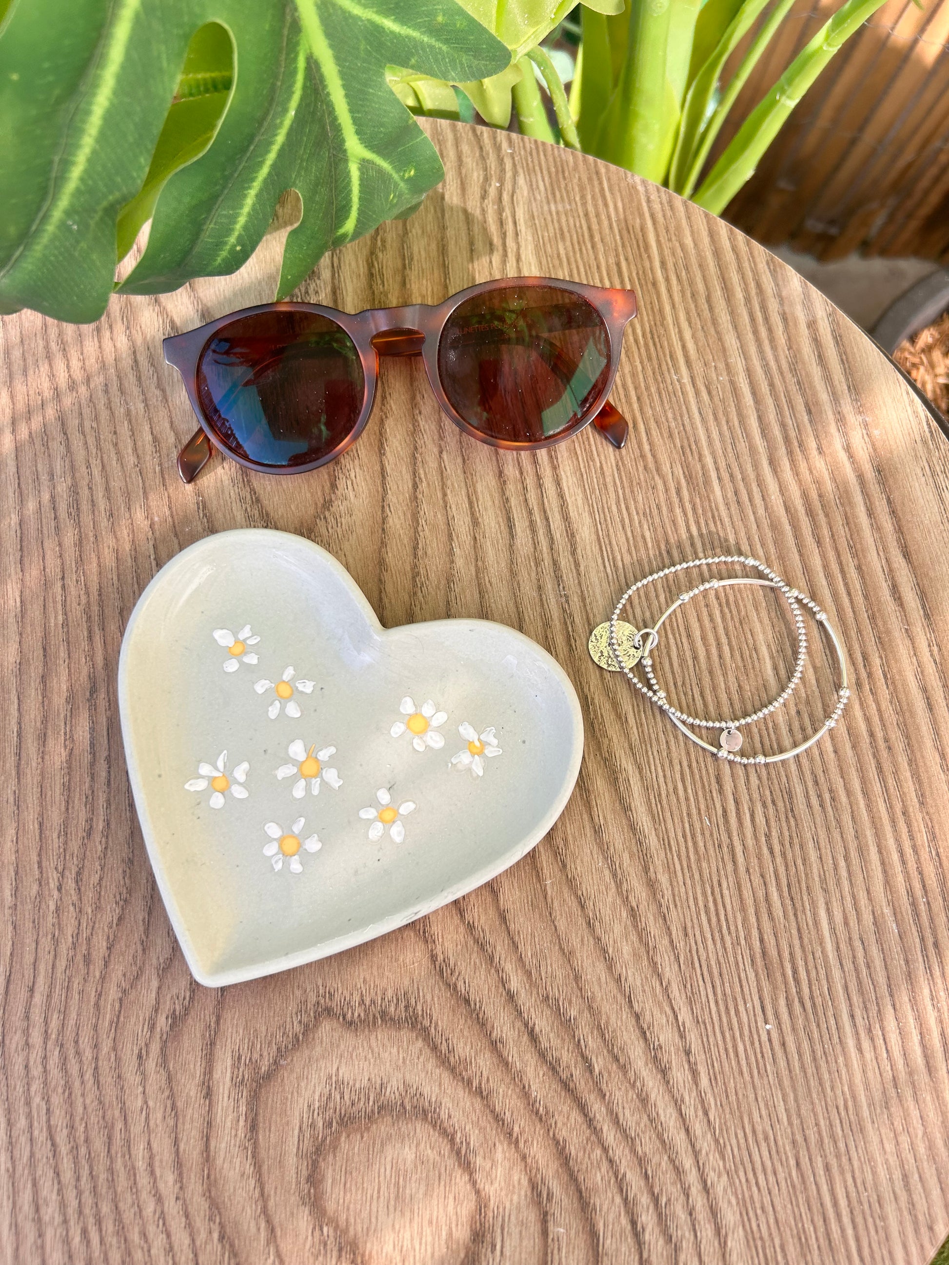 Découvrez notre nouveau vide-poche printanier 🌸dans une douce teinte vert clair, délicatement agrémenté de petits dessins de marguerites, entièrement peints à la main au pinceau. Chaque pièce est unique et peut présenter de légères aspérités, témoignant de son authenticité artisanale. Imperméabilisé, il résiste aux petites éclaboussures du quotidien. Un vide-poche original qui apporte une touche de fraîcheur, de couleur et de peps, rappelant l’arrivée imminente du printemps !