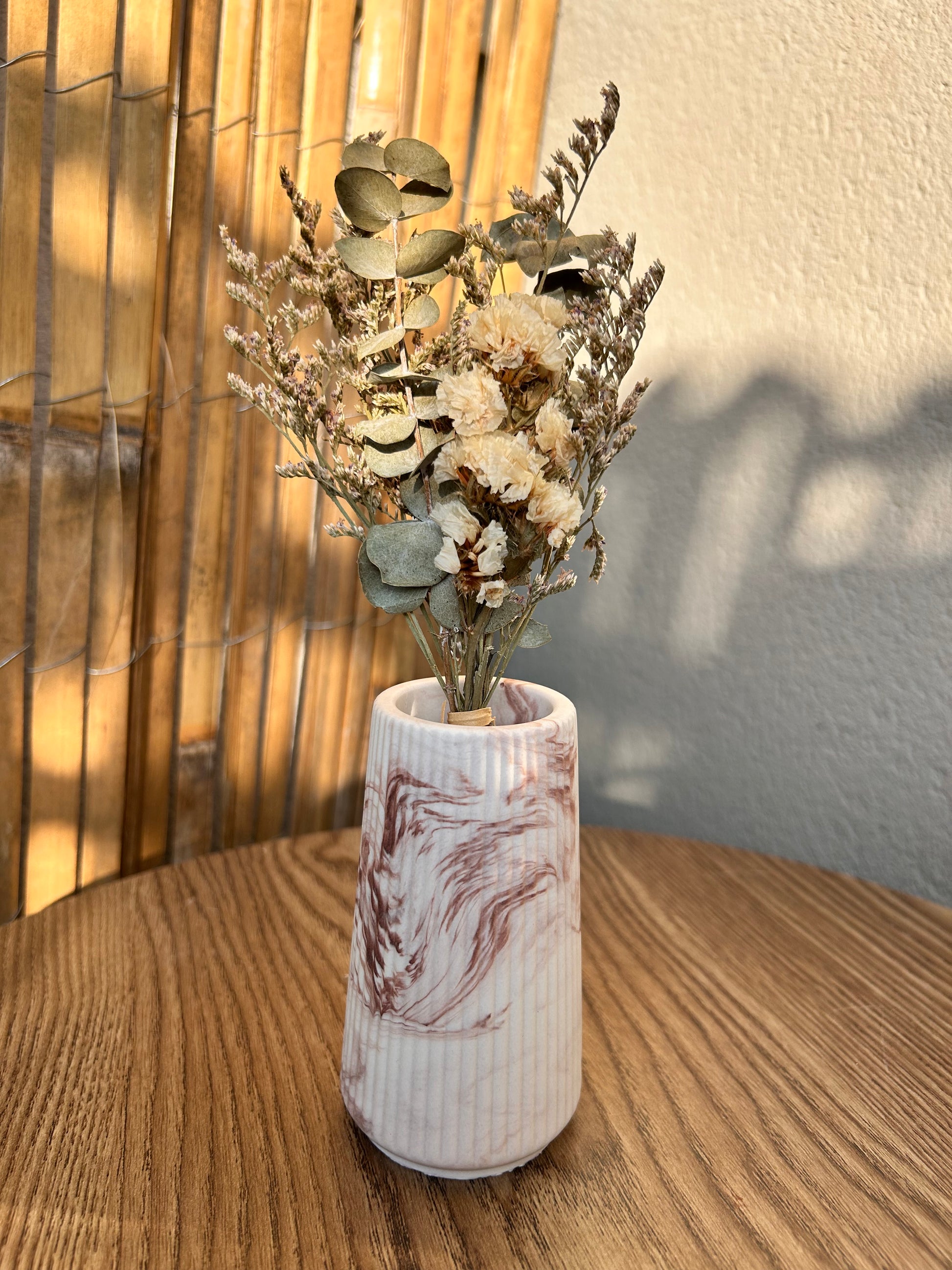Découvrez notre nouveau vase de 10 cm de haut, avec un élégant motif marbré dans des tons de blanc et de marron rosé. Sa finition soignée en fait un véritable objet décoratif qui ajoutera une touche d’originalité à votre intérieur. Un petit bijou qui saura se démarquer et apporter du caractère à votre décoration !