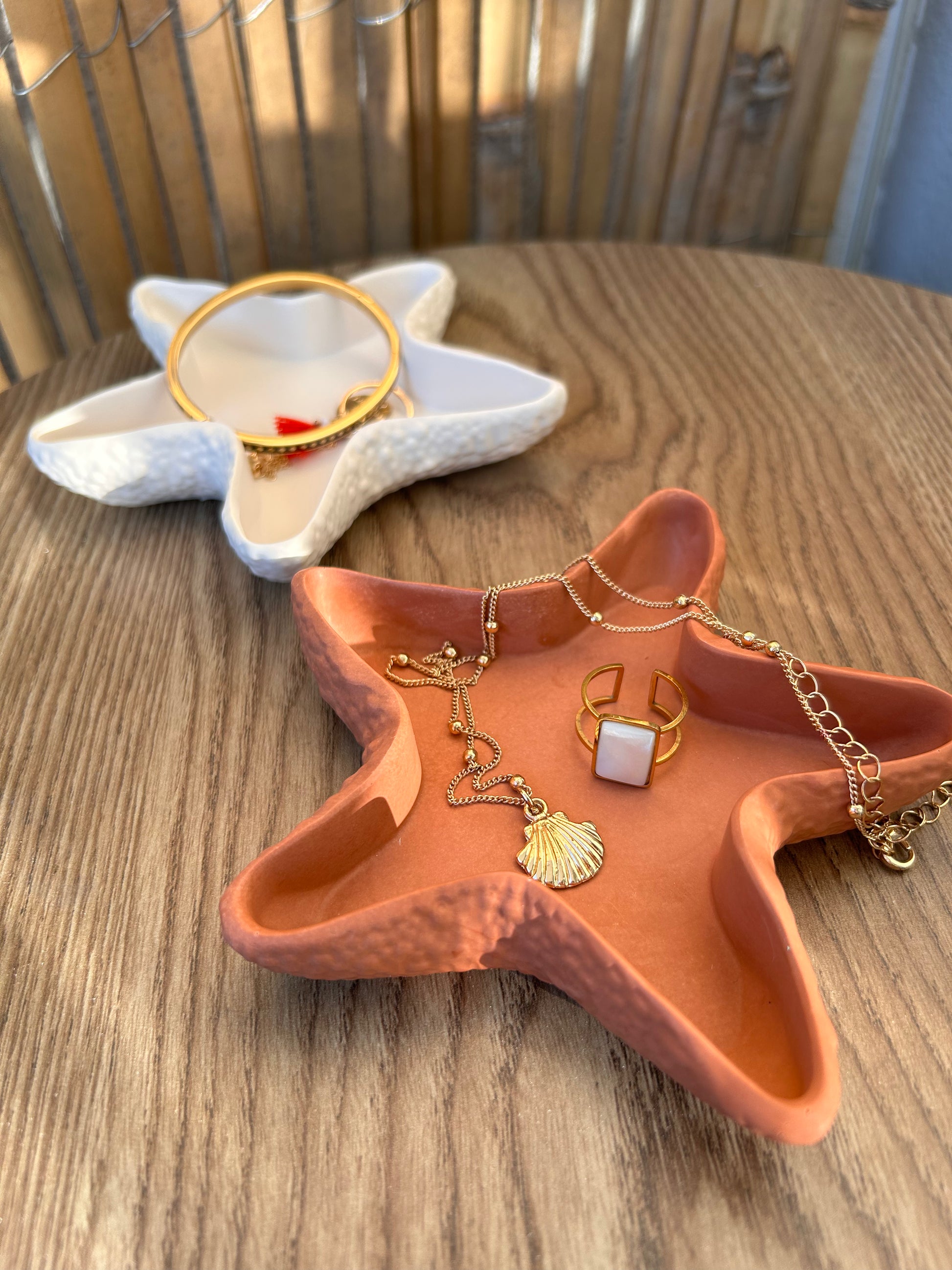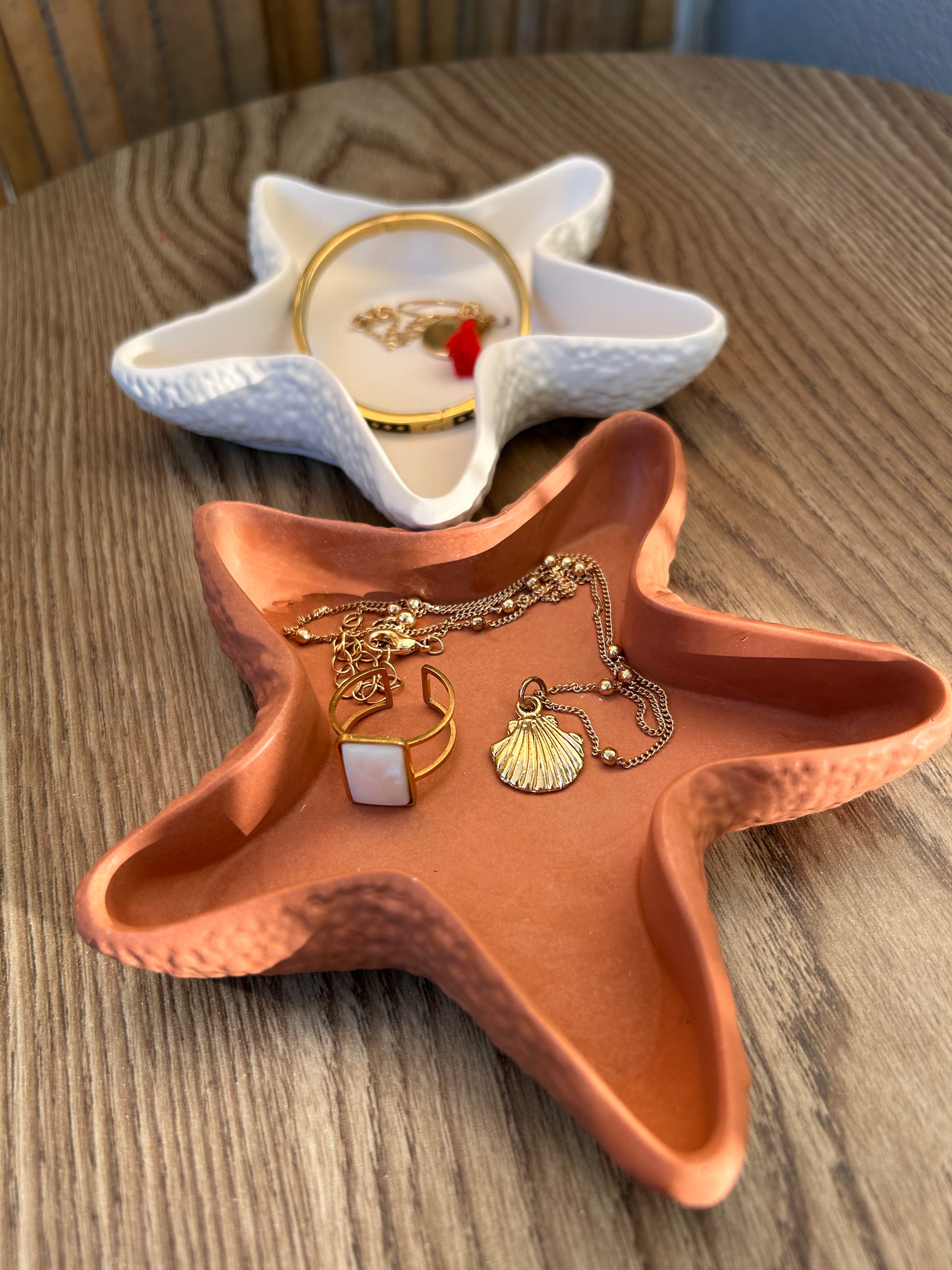 Ce vide-poche en forme d’étoile allie style et utilité avec brio. Son design unique apporte une touche décorative, mais il sait aussi se rendre indispensable : il accueille vos clés, bijoux, pièces de monnaie ou petits objets du quotidien avec élégance. Placé dans une entrée, une salle de bain ou sur une table de chevet, il garde vos essentiels à portée de main tout en sublimant votre espace. Pratique, esthétique et parfaitement polyvalent, il transforme le rangement en un geste plein de charme 🌊